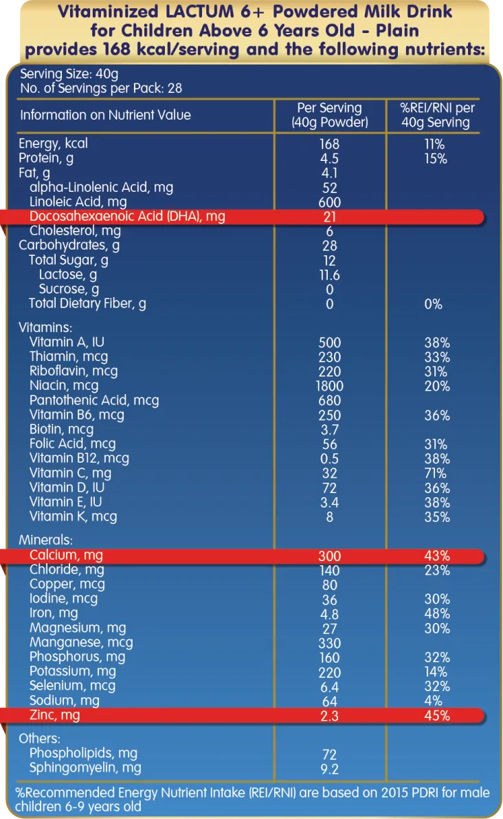 May Dagdag DHA (vs. Lactum 6+ previous formulation) to help executive function
